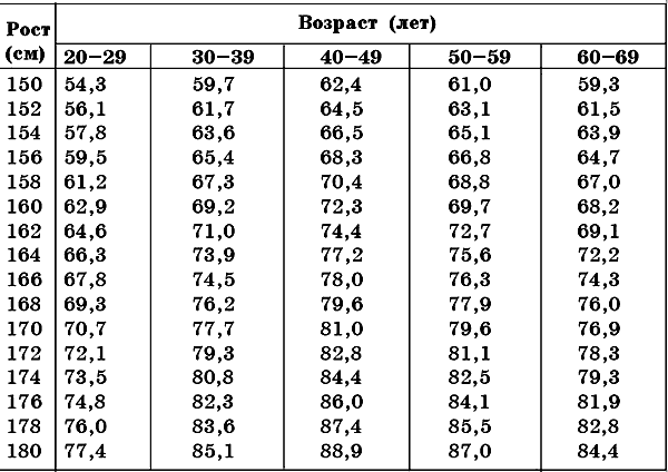 Идеальный вес. Существует много методик определения идеального веса тела. Чаще всего пользуются такой формулой: идеальный вес тела в килограммах равняется примерно росту тела в сантиметрах минус один метр. Но правильнее расчет массы тела вести с учетом типов телосложения.